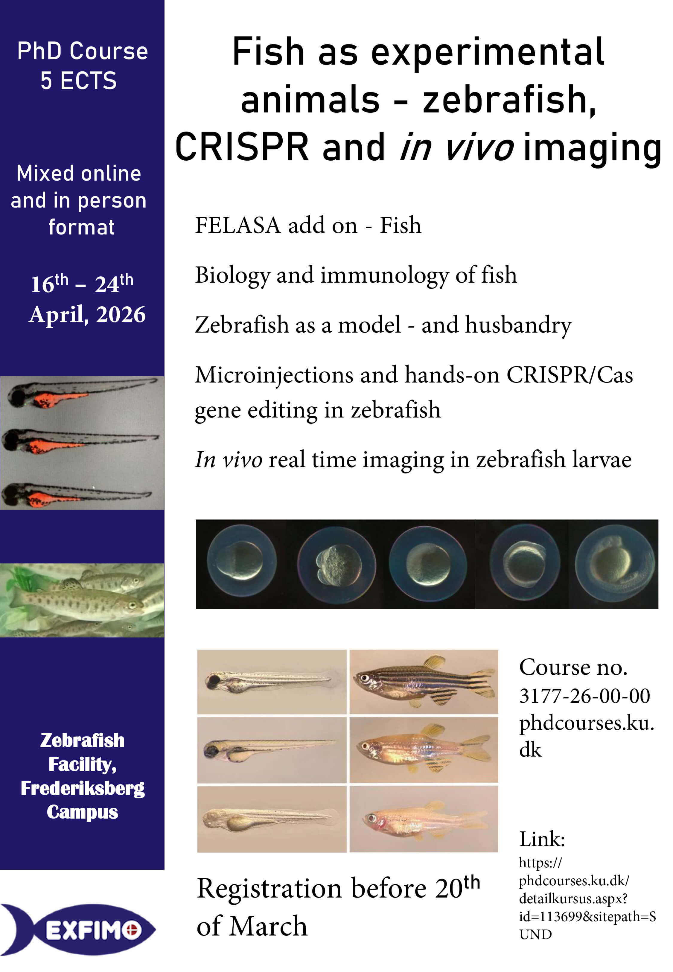 This course functions as an add on for fish to FELASA. Please distribute this flyer to relevant colleges or join the course yourself.